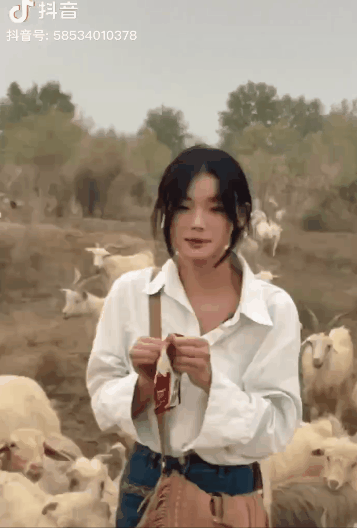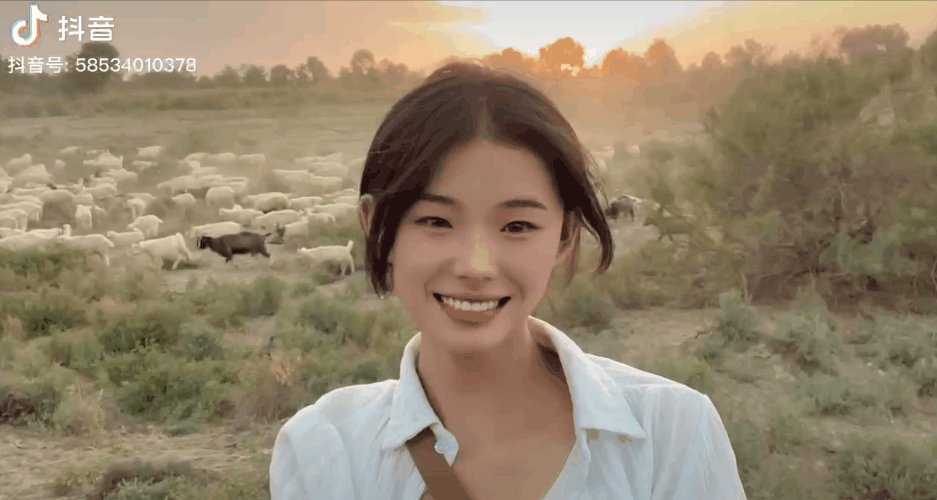 看到她在新疆的日落下,站在羊群前温柔一笑……