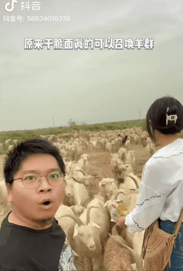除了噶羊飞快,噶羊少女还能用干脆面召唤羊群,干脆面一打开,羊群跟着跑!