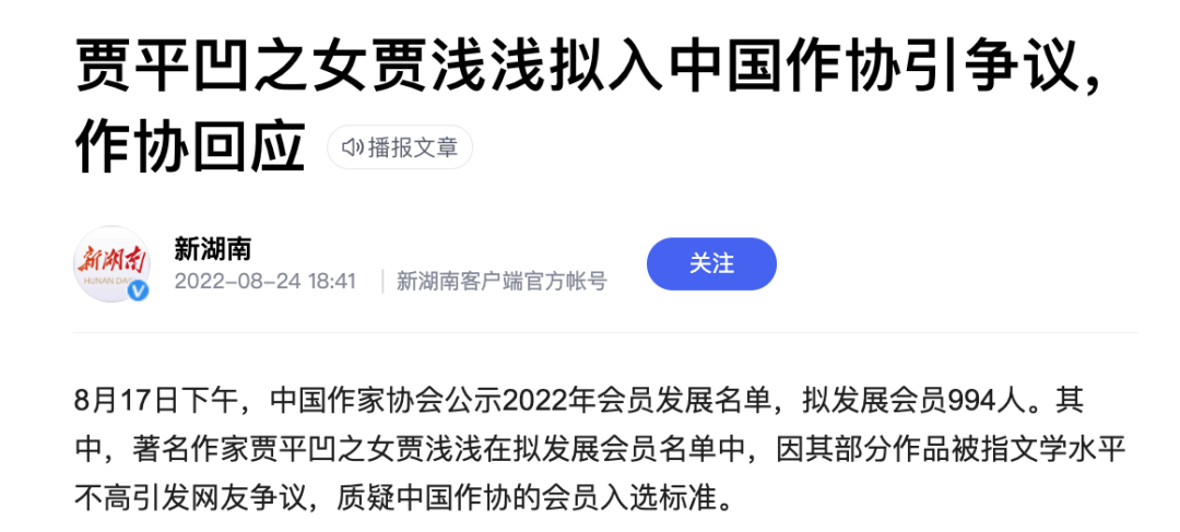 那么,在事情发展良久后,中国作协也表示,决定不将贾浅浅列入2022年新会员名单。