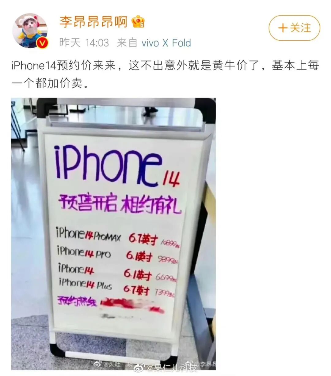 而一些线下店也早早开启了iPhone 14系列的预售活动,从目前被拍摄的部分线下海报上来看,价格不低,差不多都是在加价卖: