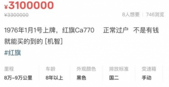 有网友爆料从某二手交易网站发现了一辆二手红旗轿车,但这辆二手车标价高达310万元!