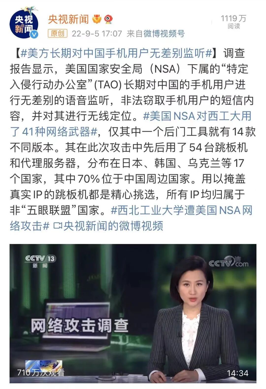 9月5日下午,西北工业大学发表公开声明:我们坚决反对以任何形式实施网络攻击。