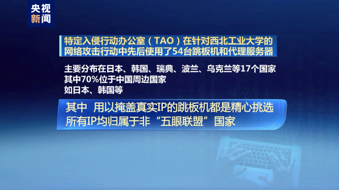 9月5日,国家计算机病毒应急处理中心和360公司分别发布了关于西北工业大学遭受境外网络攻击的调查报告,初步判明相关攻击活动源自美国国家安全局(NSA)“特定入侵行动办公室”(Office of Tailored Access Operation简称TAO)。