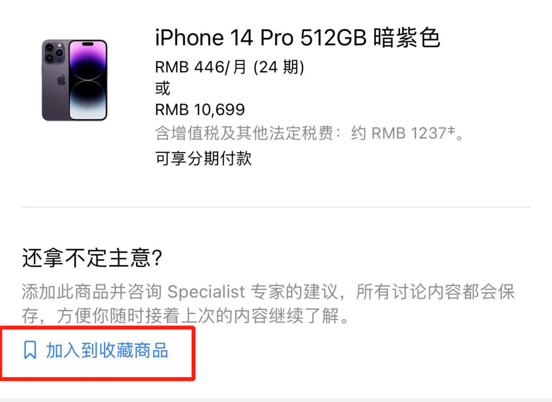 提前选好自己想要的机型、颜色、容量等信息,并加入到收藏商品。
