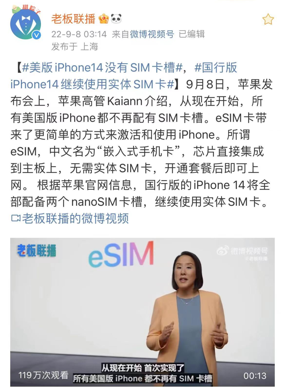 不过,需要注意的是,美版iPhone 14全系取消了SIM卡槽,转用eSIM,而国行版继续使用实体SIM卡。这也就意味着中国运营商不支持美版iPhone 14,买回来也没办法用。