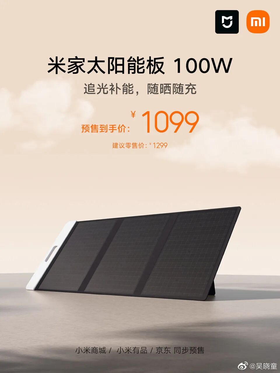 如果在户外没电了,它还能搭配米家太阳能板100W共同使用,同时支持两块太阳能板并联充电。“永动机”了属于是……