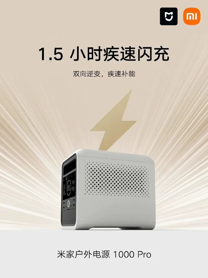 米家户外电源1000 Pro同时采用双向逆变闪充技术,50分钟最快补电80%,1.5小时即可充满。