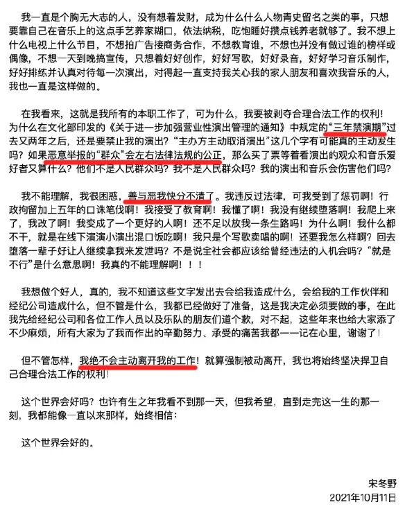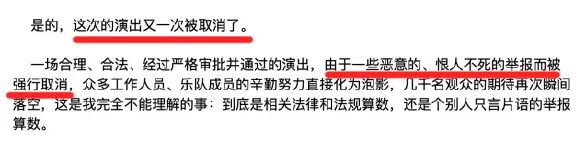 讽刺的是,有人扒出了宋冬野口中所谓的“恶意的”“恨人不死的”的举报,官方给出的办理结果是“该名演员已过了禁演期”,相关部门也做出了同意的批复,但“举办方主动取消了该演出活动”。
