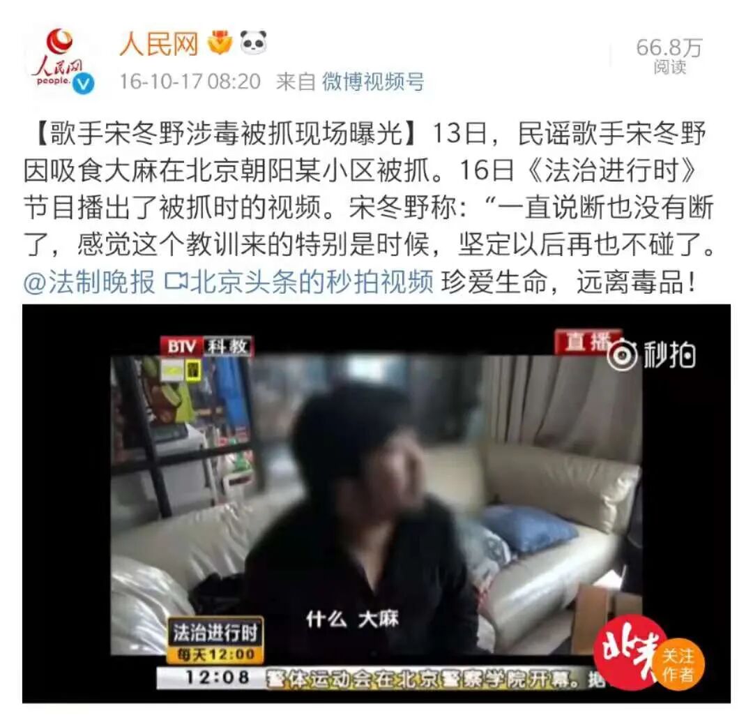 2016年10月13日,宋冬野因吸毒被行政拘留十天,成为了“劣迹艺人”。