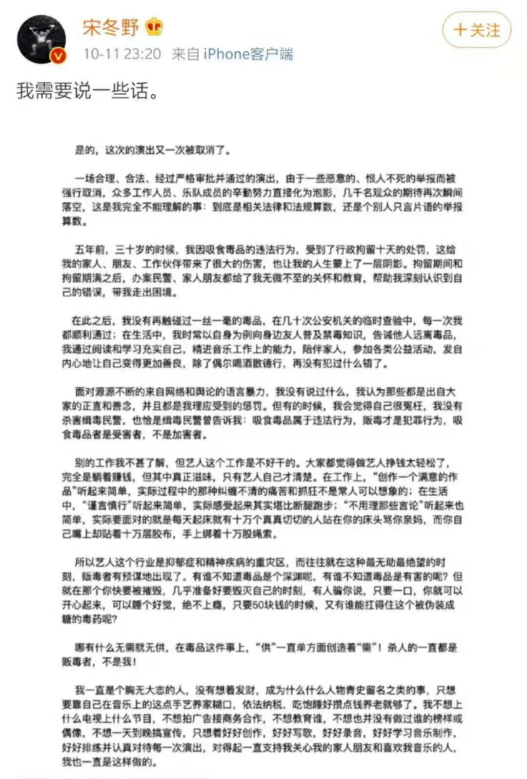 最近这两天,宋冬野再度回到了舆论的风口浪尖。