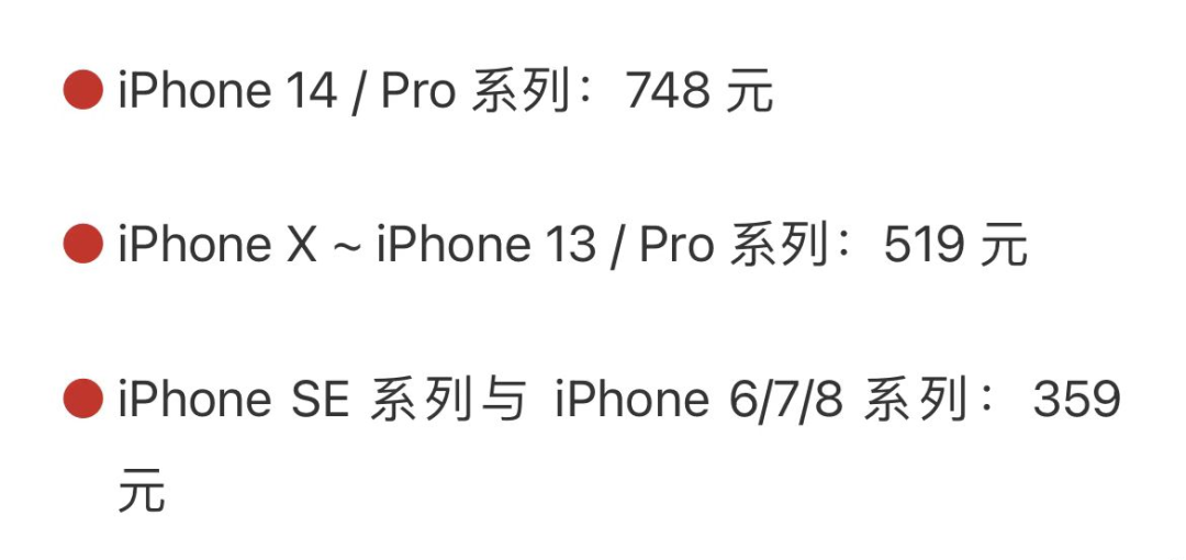 目前iPhone电池保外维修服务价格分为三档,iPhone 14系列电池维修已经涨到了748元。