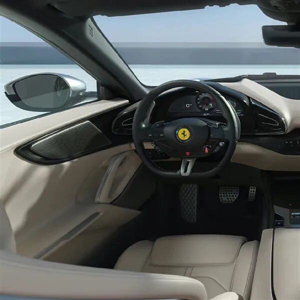 而在内饰方面,新车采用了法拉利最新的数字化座舱设计,将配备全液晶仪表盘,副驾驶前方也加入了一个全液晶显示屏,中控中央部分则是内嵌了一个触摸式的空调控制面板。