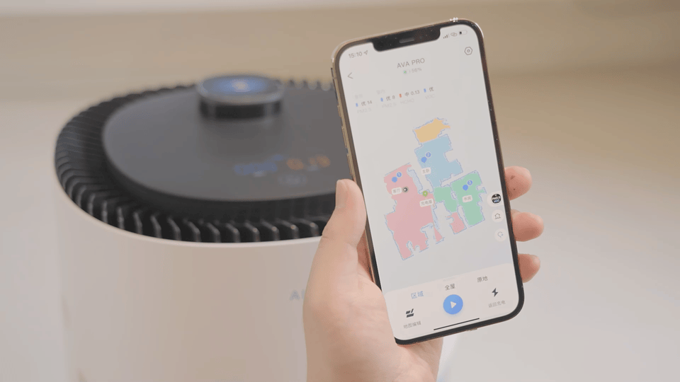 接着,科沃斯干脆突破传统空气净化器的形态,一举剪掉连接机身的电线、换用磁吸式充电……这就让沁宝AVA PRO得以摆脱束缚、满屋子撒欢。