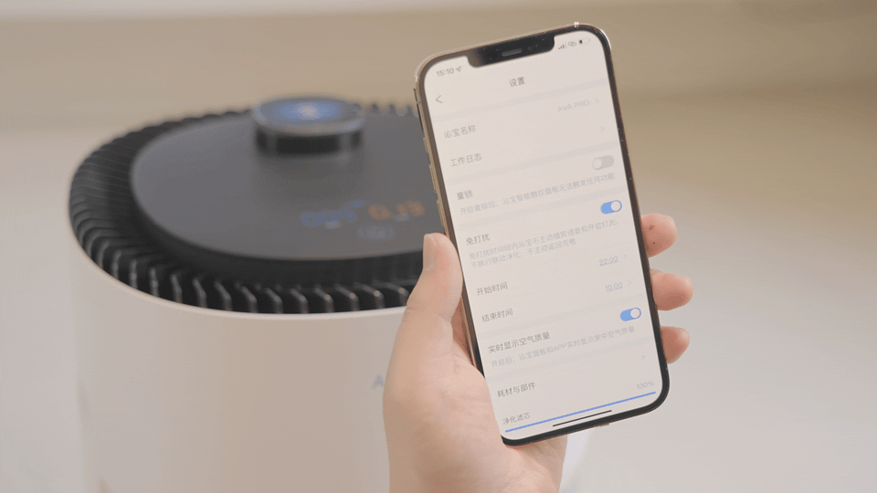鸭鸭最大的感受时,通过App也可以远程查看空气质量的数显,下班前慢悠悠打开沁宝AVA PRO净化。