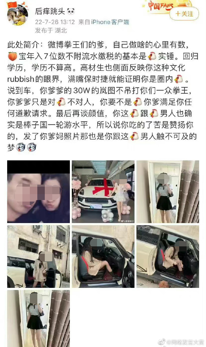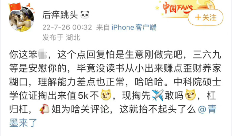 其中骂的最凶的是一个叫“后痒跳头”的账号,喷人的时候满屏都是“小动物”,还给自己立了个学霸人设,顺带黑了一把岚图……