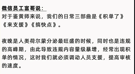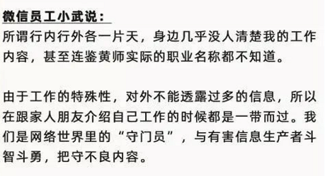 作为一名微信“鉴黄师”,工作远不止“鉴黄”,暴力、恐怖等等违规内容都归你管。
