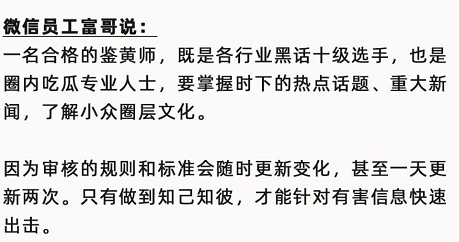 想要“鉴黄”,还得了解各行各业“黑话”,对于各种吃瓜热点也要时刻关注。