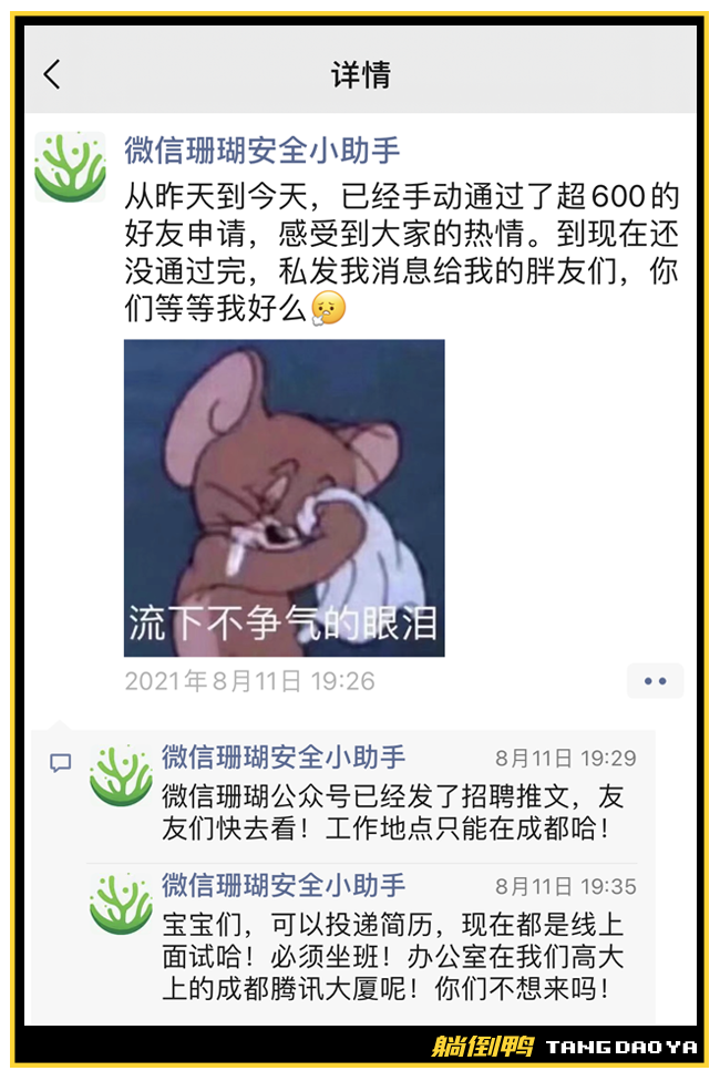 截至8月11日,微信已经收到了至少600多位有求职意向网友的好友申请(现在只会更多)。想当“鉴黄师”,面临的竞争还挺大……
