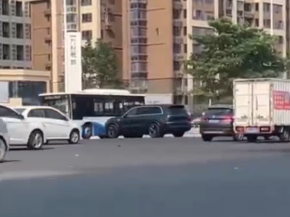 该事发车辆还未上牌,当时新车停在一个十字路口处,周边也都是来来往往的车辆。