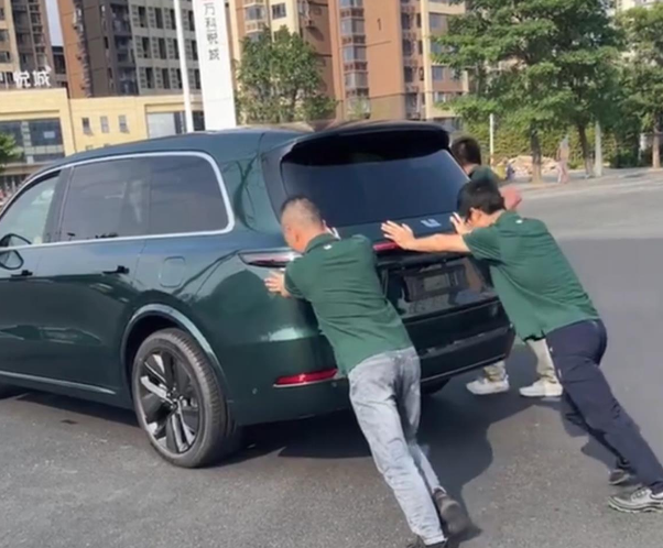 随后车主联系了售后人员,等他们赶到后,也没办法解决问题,最后只能采取人工推车。