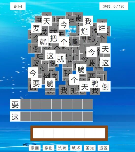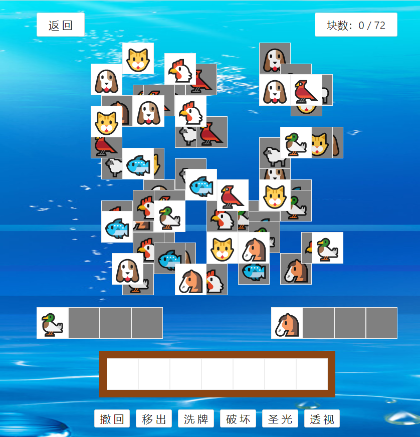 除了最基本的玩法之外,作者还增加了四种道具:洗牌、破坏、圣光和透视。