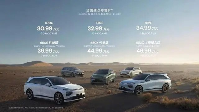 这次的新车共推出了6款车型,包括570 G、570 E、702 E、650 E性能版、650 X性能版、650 X上市纪念版,定位为中大型纯电SUV,预计于2022年10月底开始正式交付。