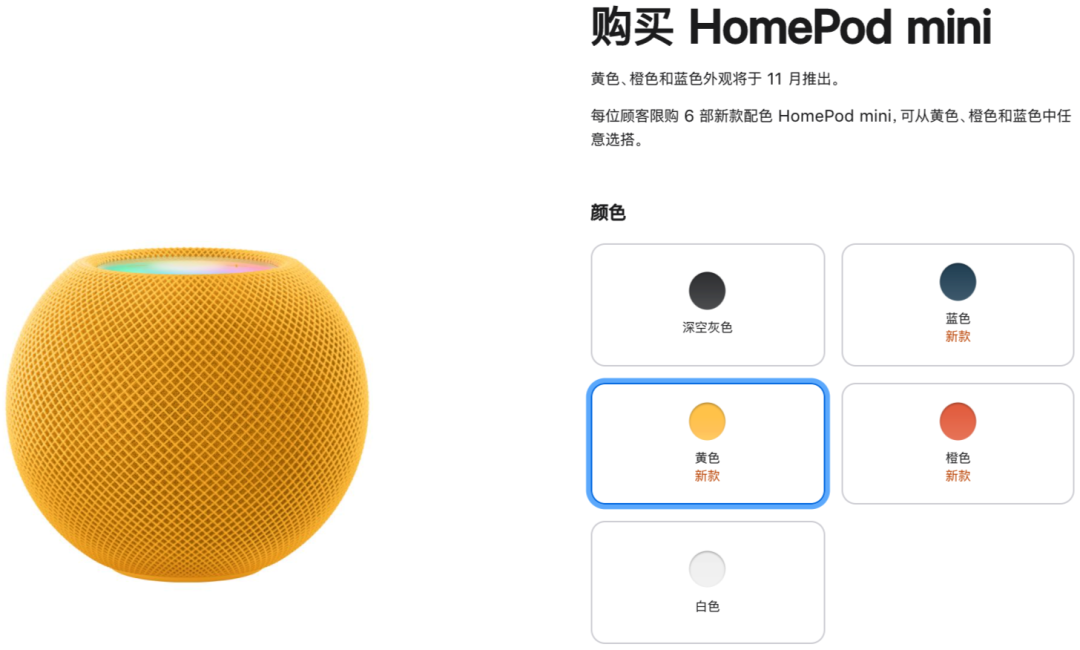 要说这场发布会“最敷衍”的新品,那非加入换了色的HomePod mini莫属……