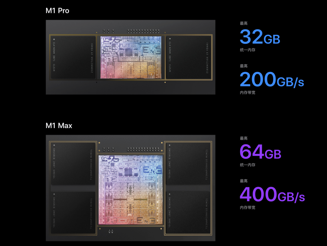同时,M1 Pro的GPU也只有M1 MAX的一半。