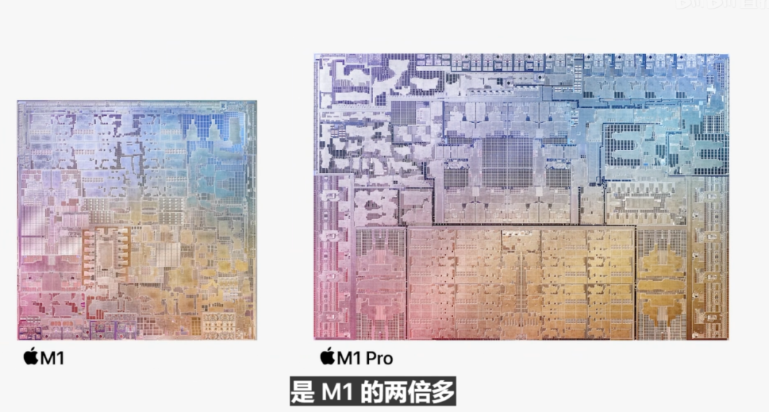 没成想,M1原来只是“小试牛刀”——今天,苹果一口气发布两款芯片,其中M1 Pro芯片光晶体管数量就达到了M1的足足两倍!