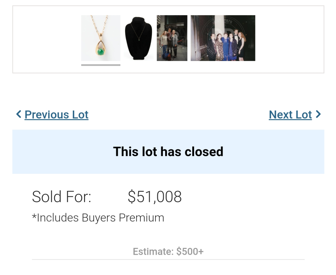 与这条项链同时拍出的,还有詹妮弗和马斯克家人的两张合影。