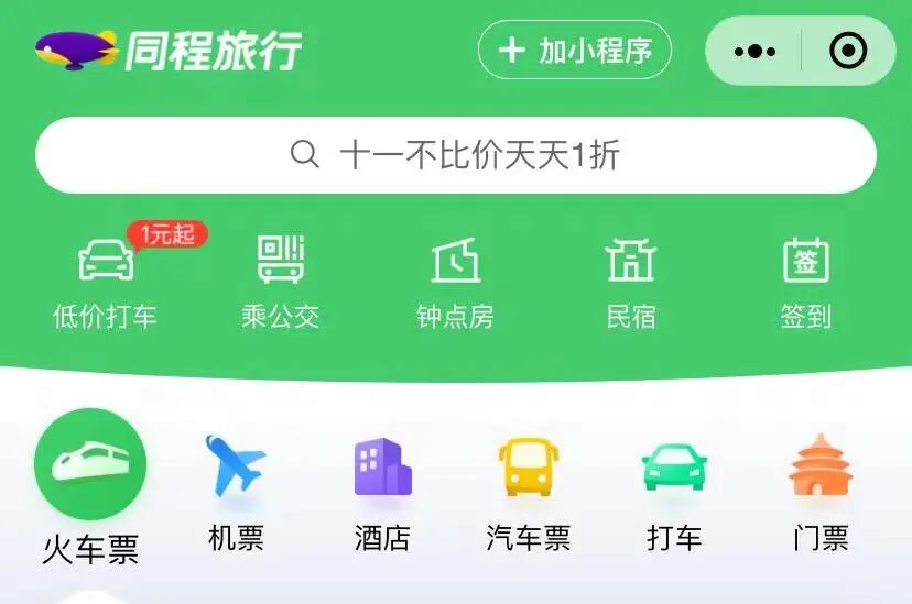 比如在微信九宫格当中的交通出行板块中,火车票机票、酒店均由同程艺龙提供,而腾讯是同程艺龙的第一大股东,持股比例超过20%。