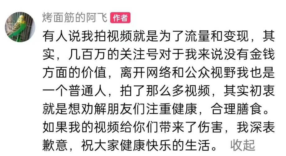 表示他的视频存在一概而论、没有对具体的添加剂进行详细介绍等问题,且存在被大量用户举报的情况,希望辛吉飞在接下来的创作中能够适当调整内容方向。