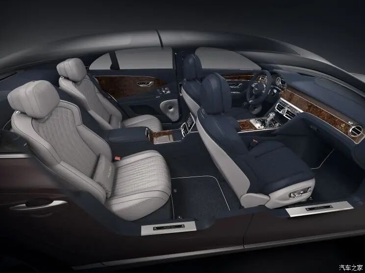 内饰方面,这台宾利飞驰的内部采用了独特的4座布局,前座采用帝王蓝配色,并向后流动延伸,融入后排的巴罗达蓝配色。