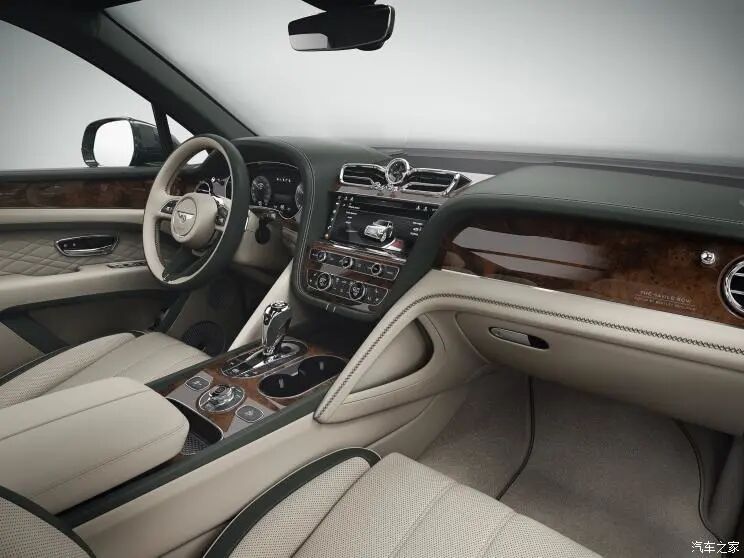 基于添越打造的设计灵感来自世界著名的时装定制之都,因此设计风格展现的是Savile Row工匠们卓绝的手工工艺。它采用了独特的墨绿色车身配备22英寸墨绿色亮面抛光轮圈,同时使用4座内饰布局,并配合上的墨绿色➕米灰色皮革: