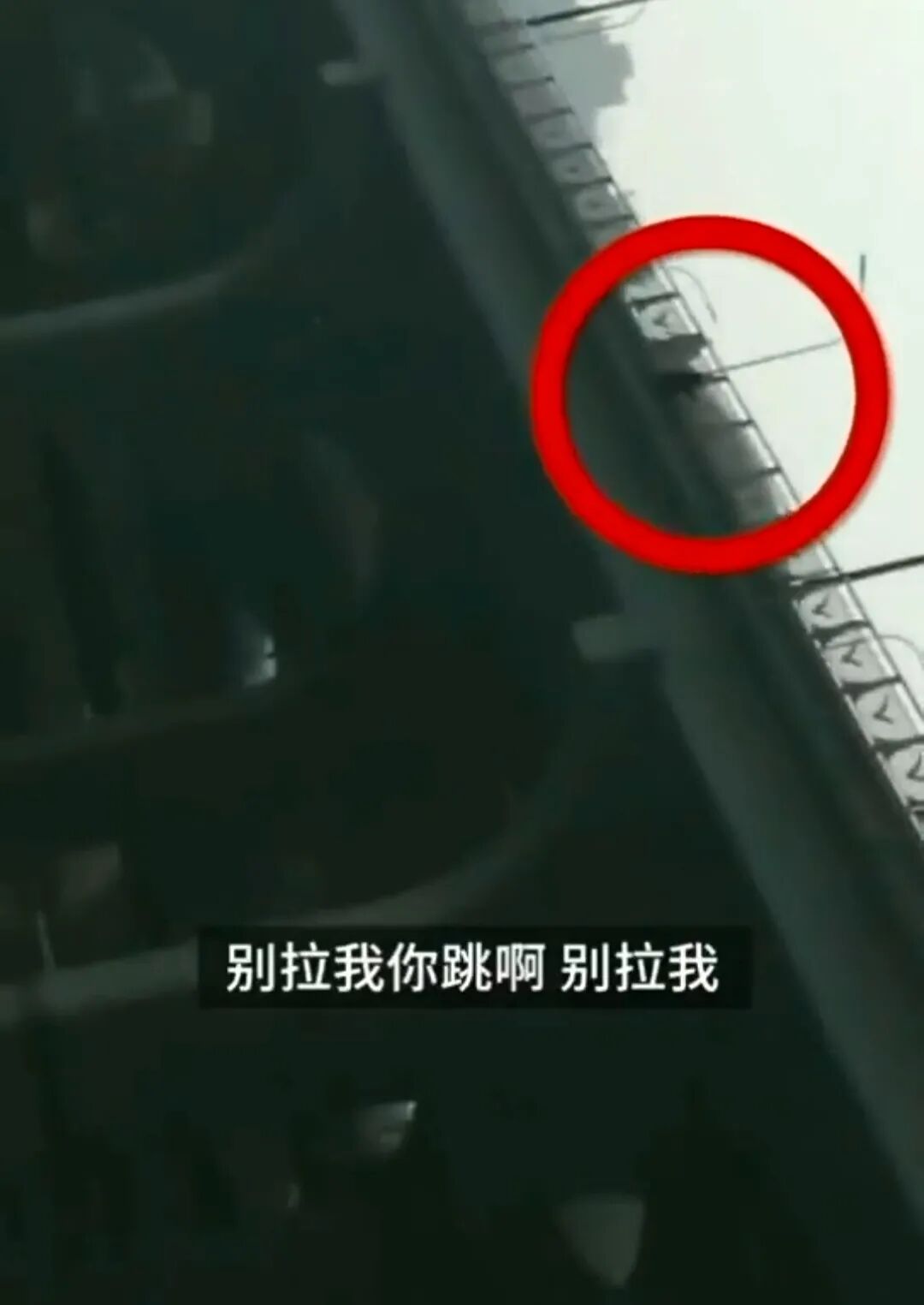 却有一围观男子边拍视频,边起哄“倒是跳啊”。嗤笑,“别拉我,你跳啊,还别拉我!”。