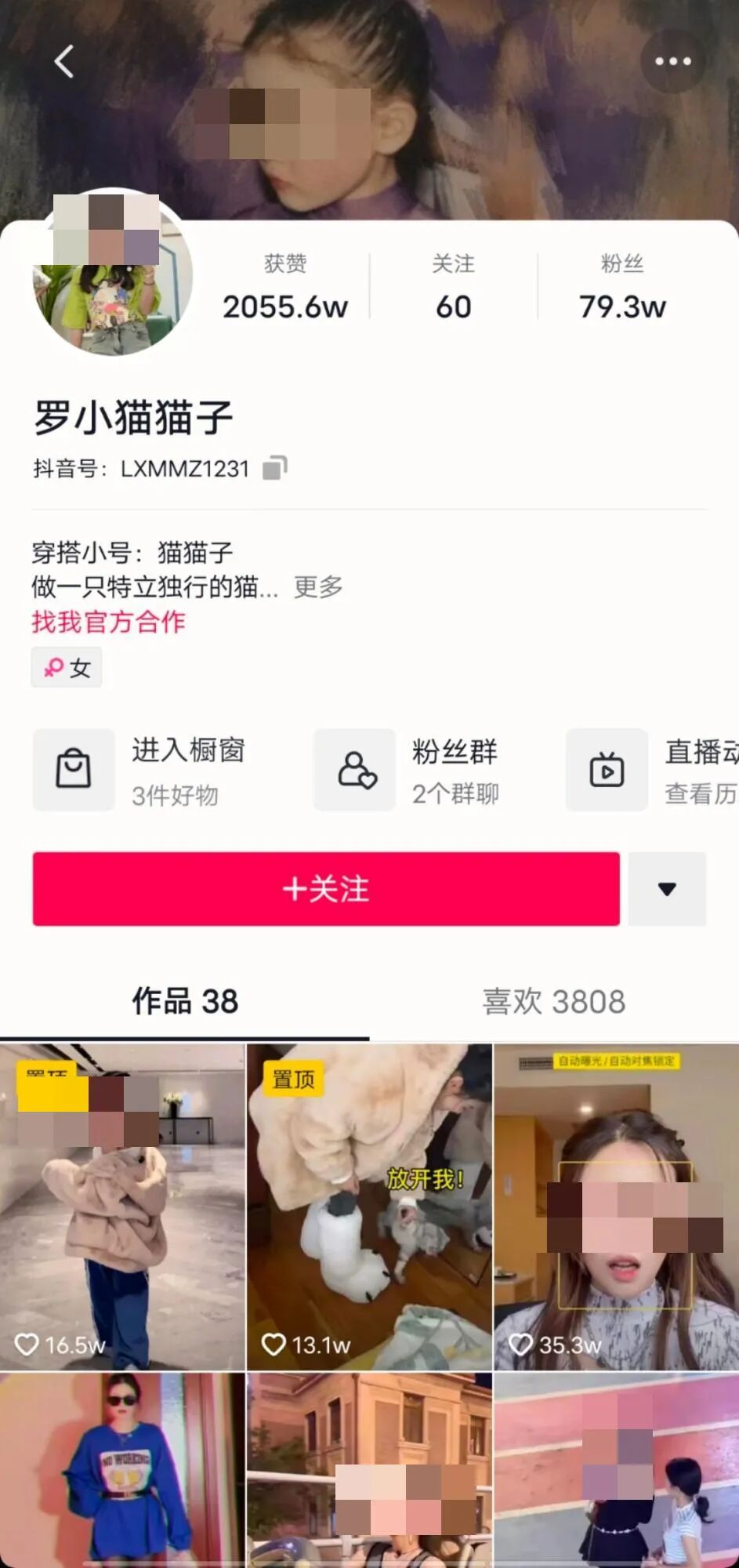 罗小猫猫子是某短视频平台的一名网红,平时靠发一些穿搭视频,积累了70多万粉丝。