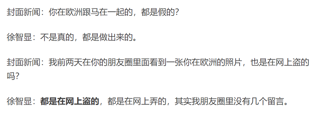 在记者采访的过程中,徐智显虽然明确地表示了自己目前在国内,并且从来没有去过欧洲,所有的内容全都是伪造的。