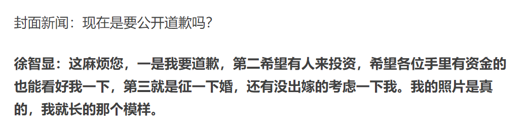 其二,但如果徐智显真的生活在欧洲,那为什么会在突发奇想骑马回国之后,又突然“反悔”,借用媒体平台向大家道歉,“这一切都是假的”?