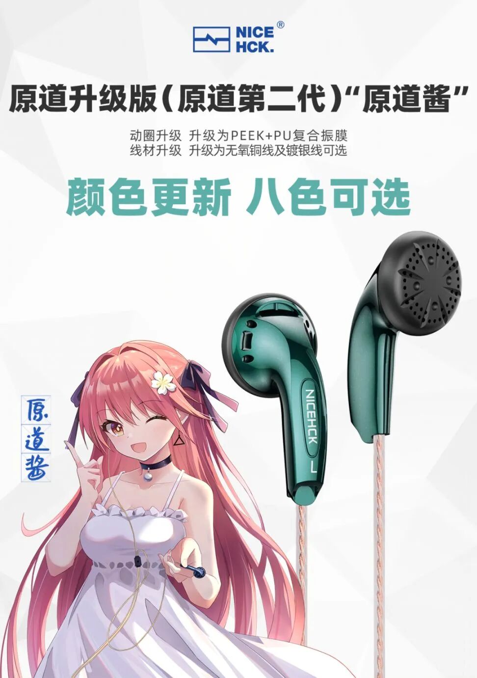根据原道官方消息,NiceHCK原道平头塞二代升级版“原道酱”增加新颜色,售价9.9元起。