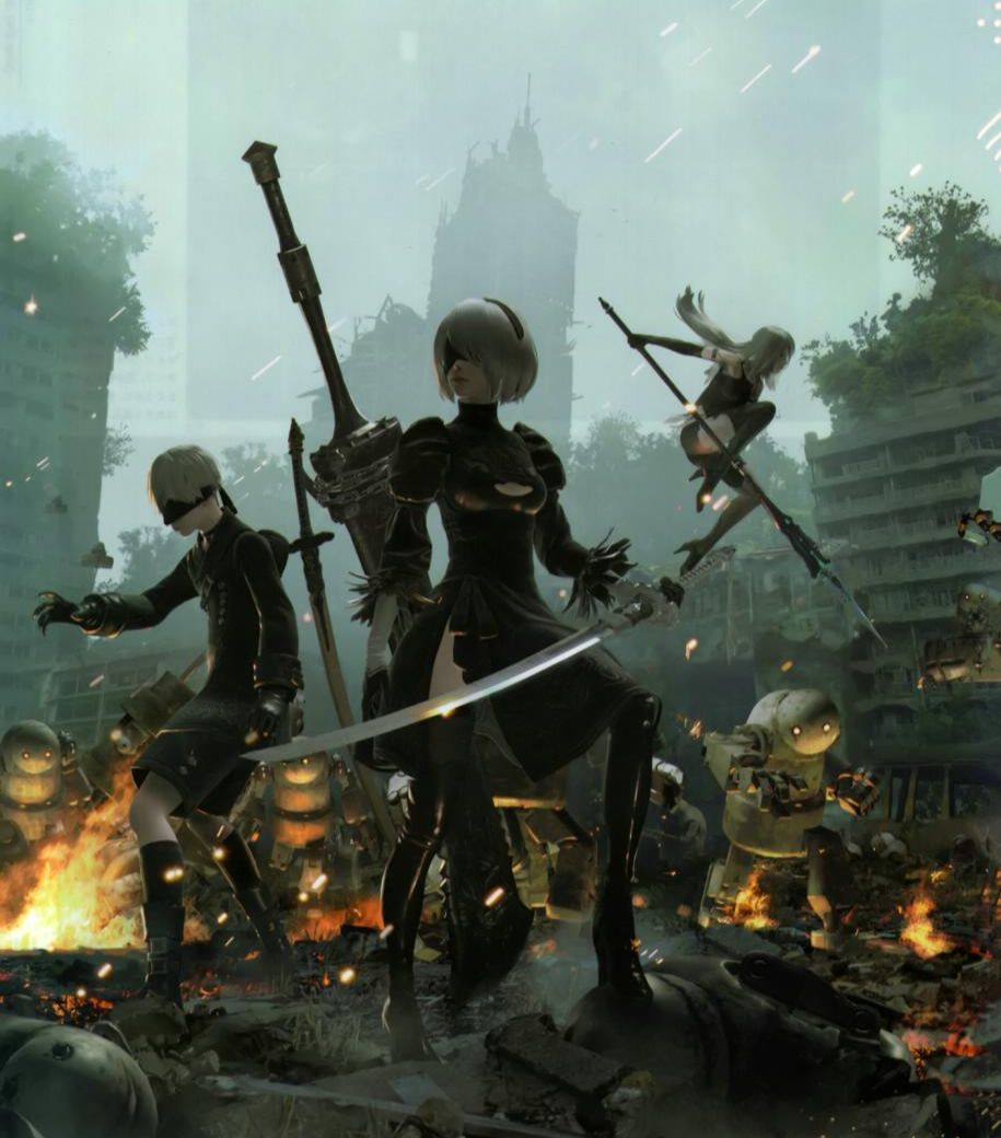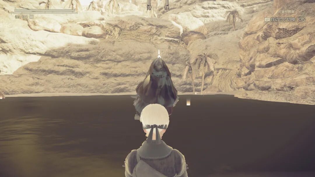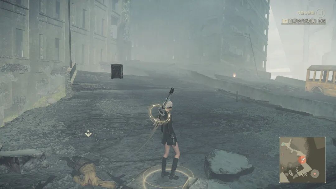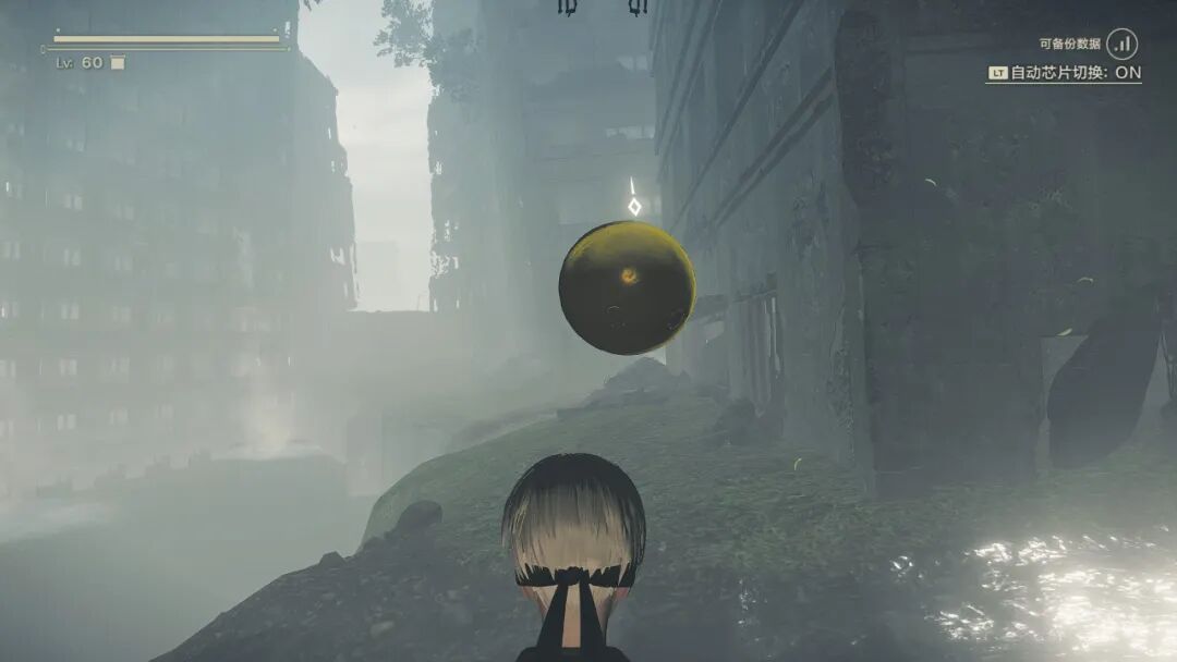 游戏玩到后期就有些压抑了,到处都是雾蒙蒙的景色,黑白灰组成了画面的主要色彩。此时女主角2B已经死亡,我们操纵的男角色9S在荒芜的地球上孤独地继续执行任务。