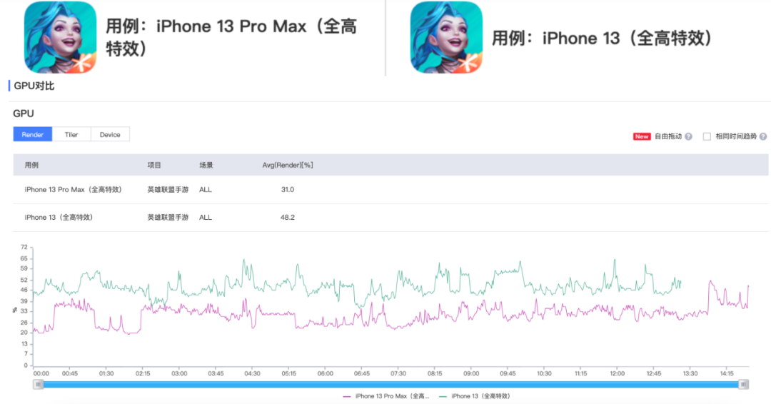而13 Pro Max提供了更大的屏幕,因此在游戏中画面更大,看得也更清楚,操作也相对更舒展、更精细。