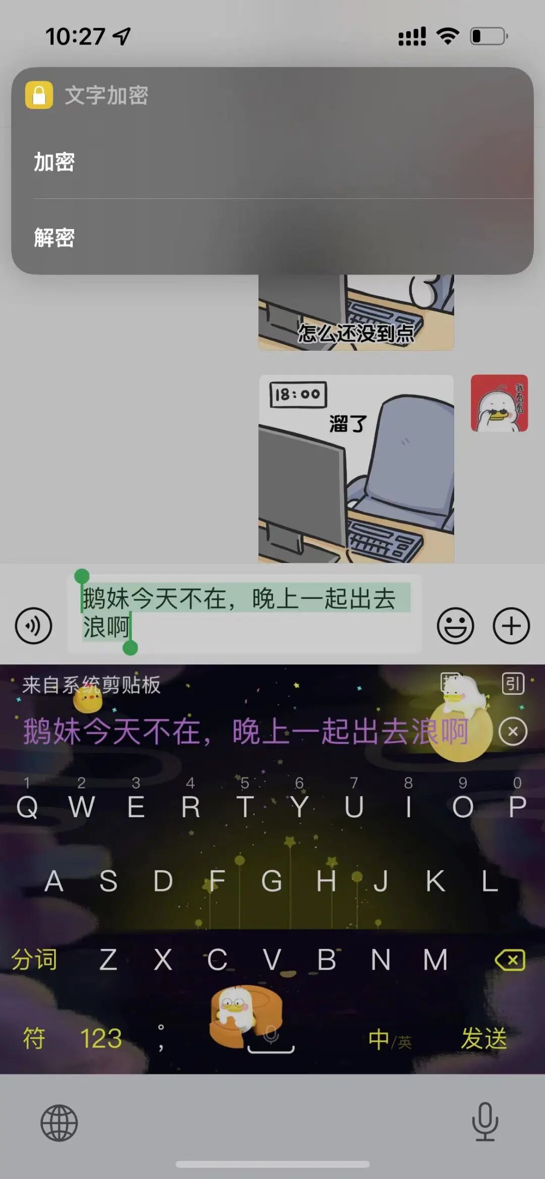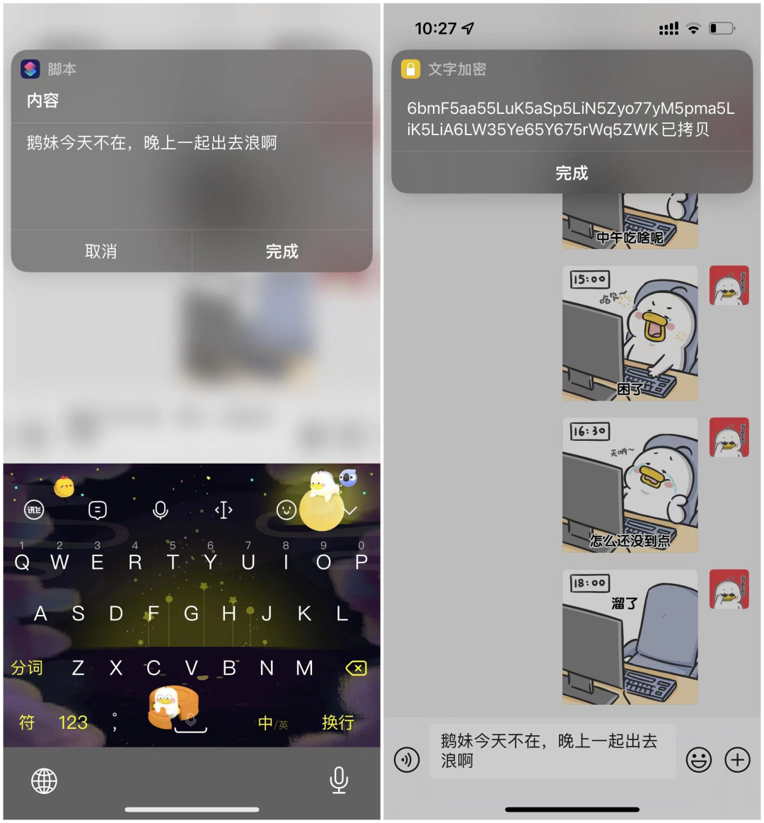 加密的文字会复制到剪切板,直接粘贴即可发送。