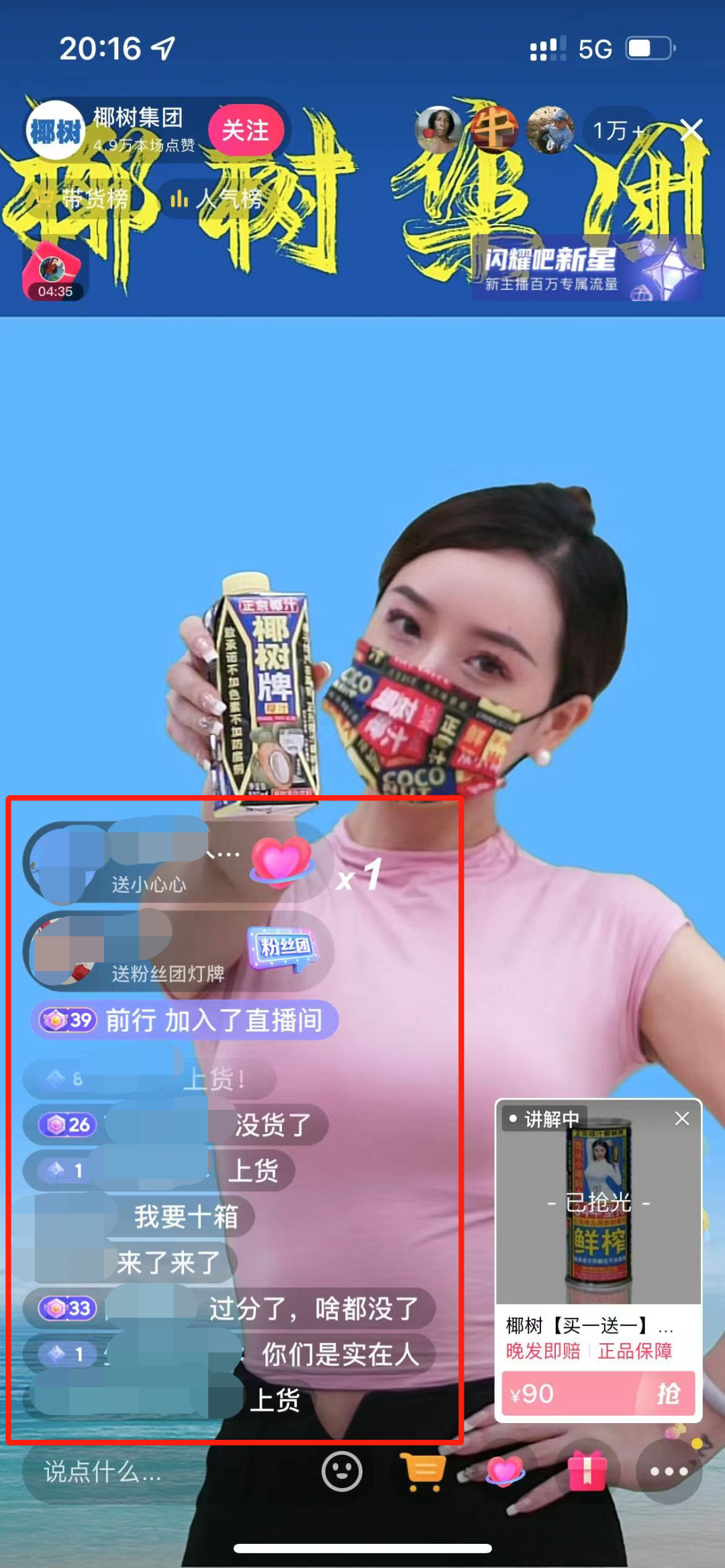 别人家直播都在催上才艺,而椰树家网友都在催着上货。