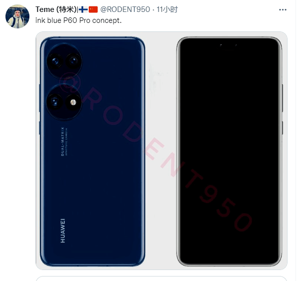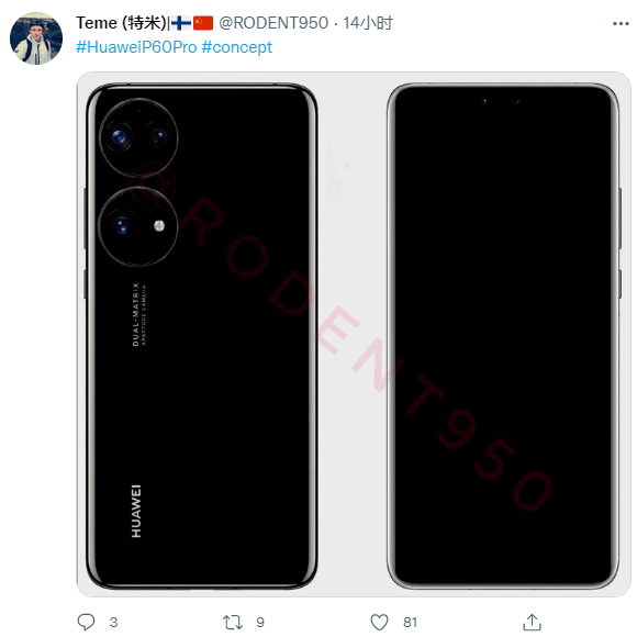 数码博主@RODENT950 在海外社交平台也曝光了一组华为P60 Pro的概念图片。
