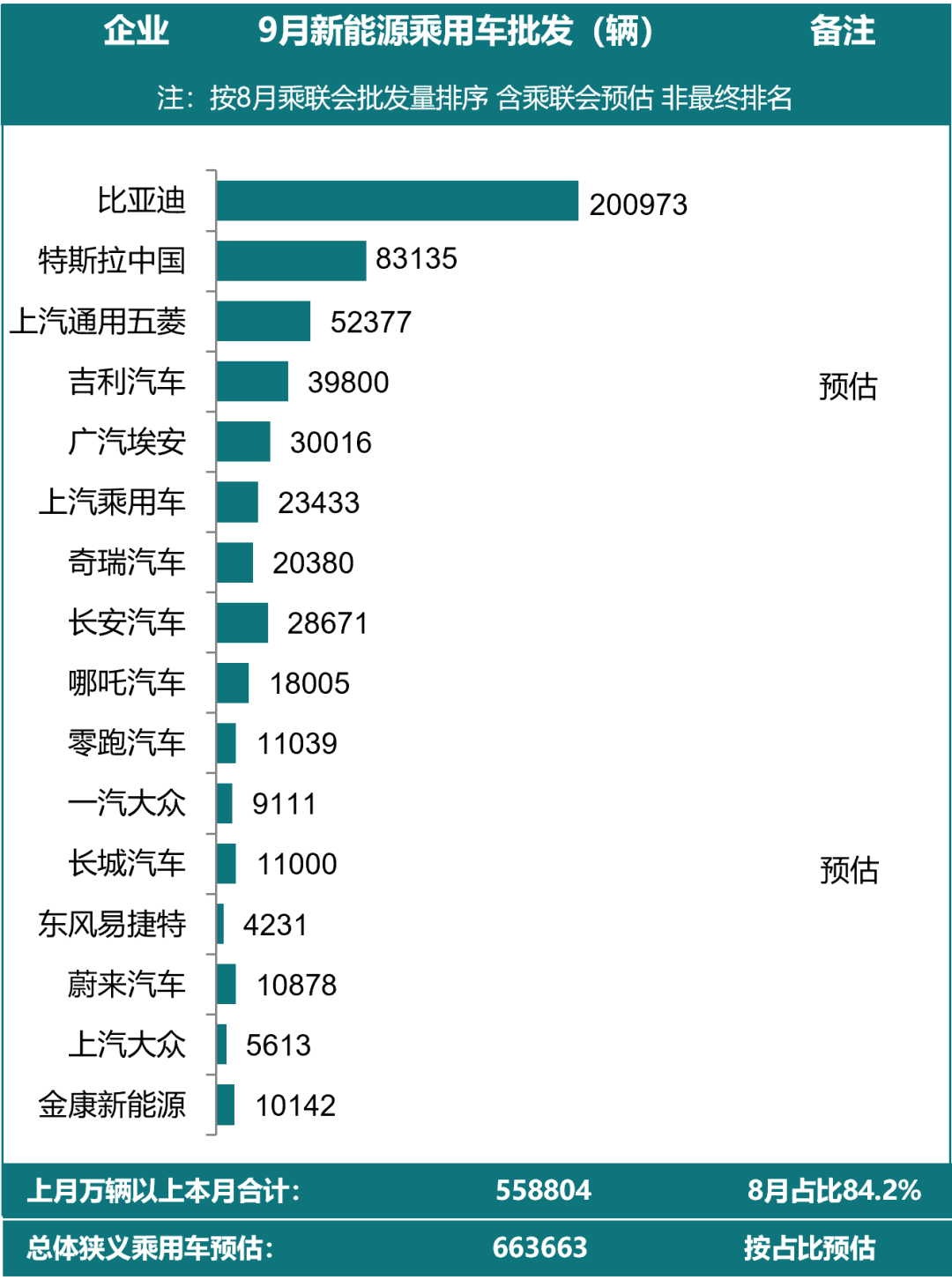 乘联会最新公布的9月份新能源乘用车厂商批发销量显示,比亚迪批发量达到20.1万辆左右,而特斯拉中国的批发量是8.31万辆,算下来比亚迪汽车销量相当于特斯拉的2.4倍。