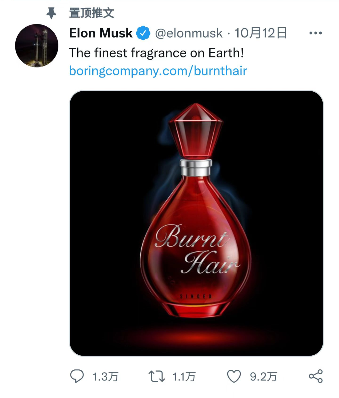 马斯克的带货能力不容小觑,很快这个“烧焦头发”香水的销量就超过了一万瓶。