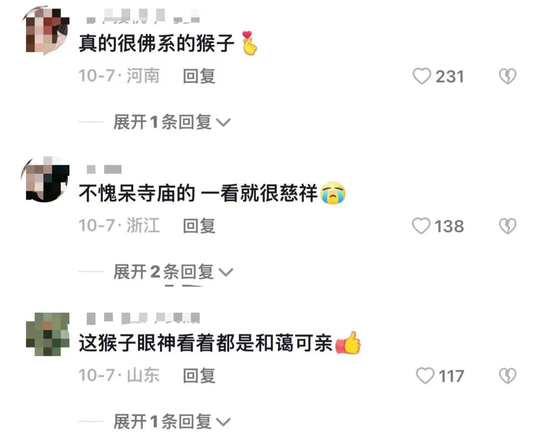 有很多人觉得可能是受到寺庙香火的浸染,星星看起来有佛性和禅意,和别的猴子不大一样。