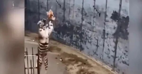 青海生活频道:游客在动物园用鸡钓老虎,老虎重摔着地引发热议,动物园回应来了