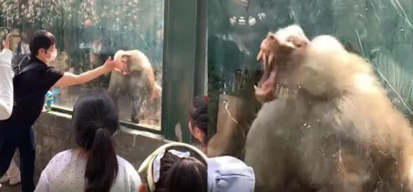 再比如有拍打玻璃惹怒狒狒,使狒狒暴怒撞头: