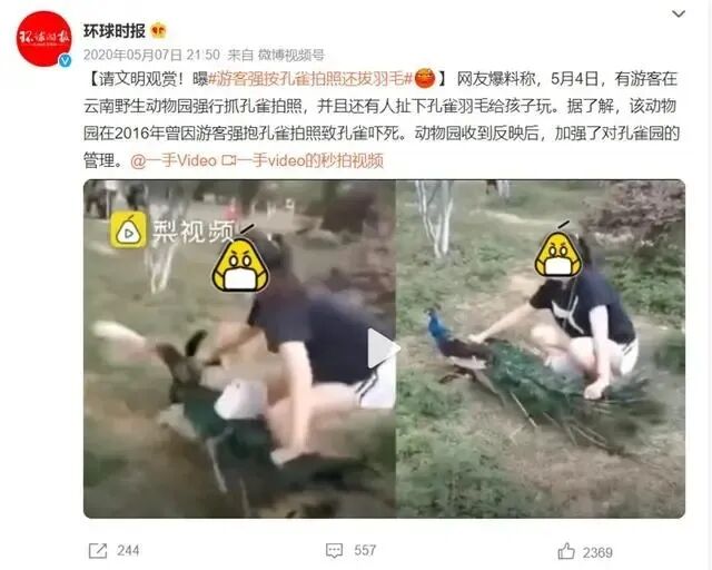 极目新闻:云南一动物园内游客追逐孔雀还拔毛,园方:尚未找到当事游客